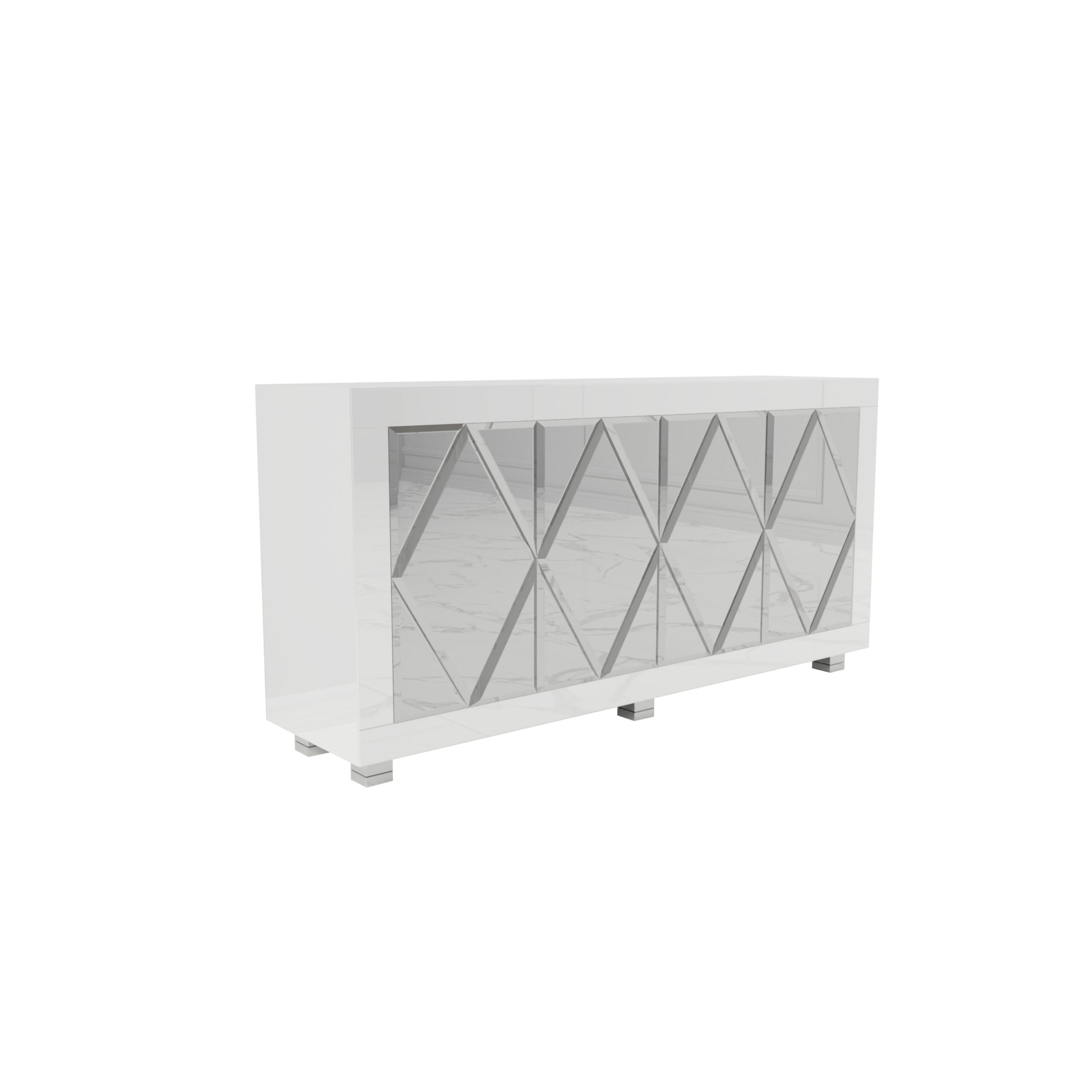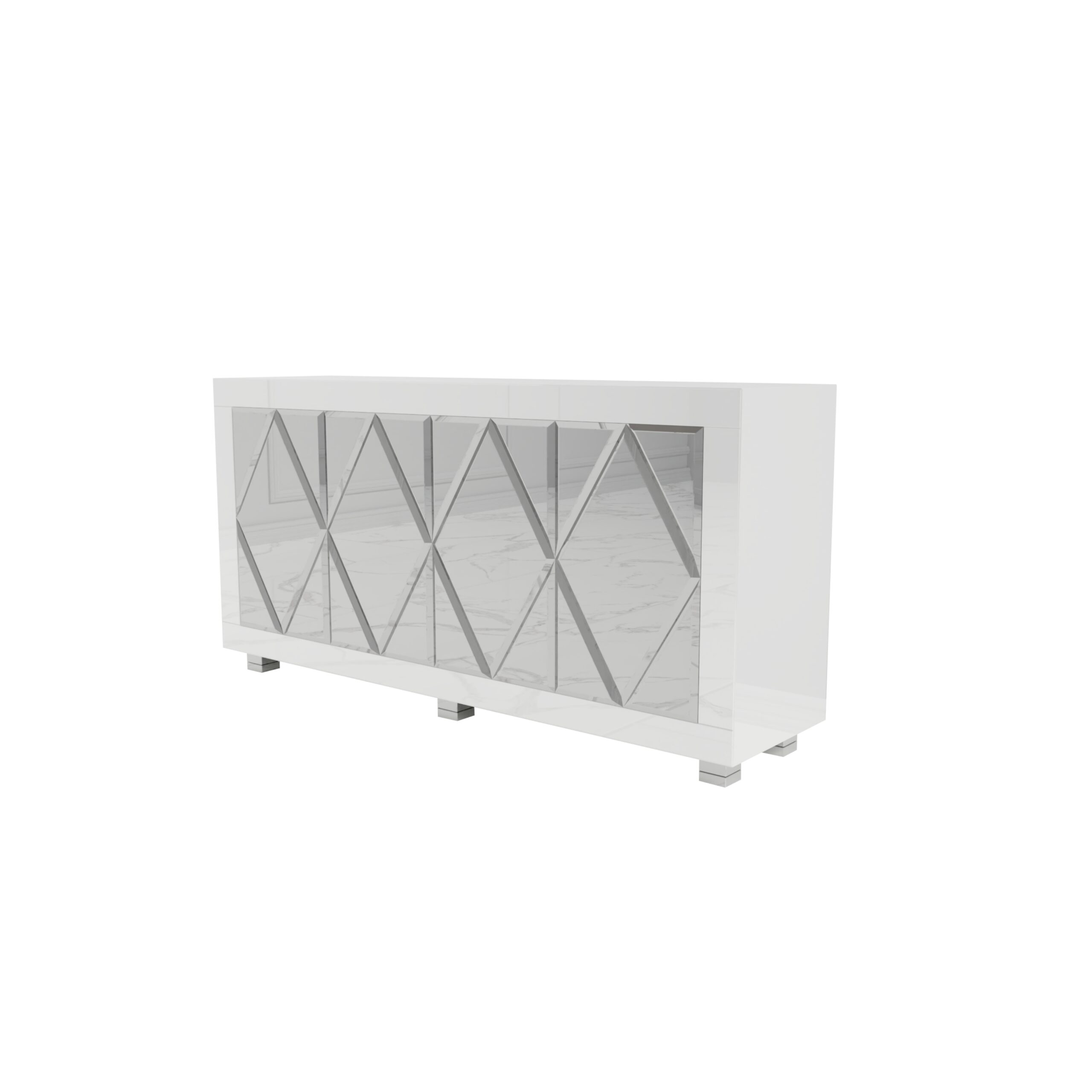 Biała szklana komoda z rombami Glamour CASTELLO WHITE