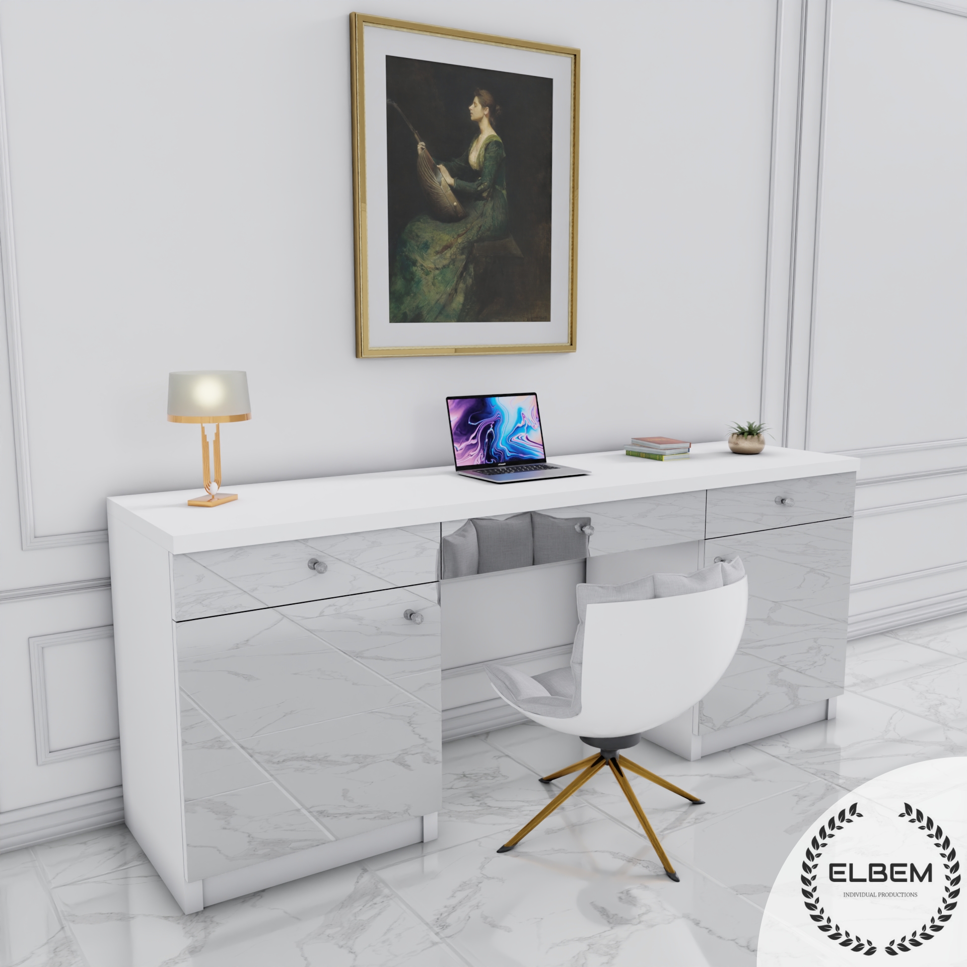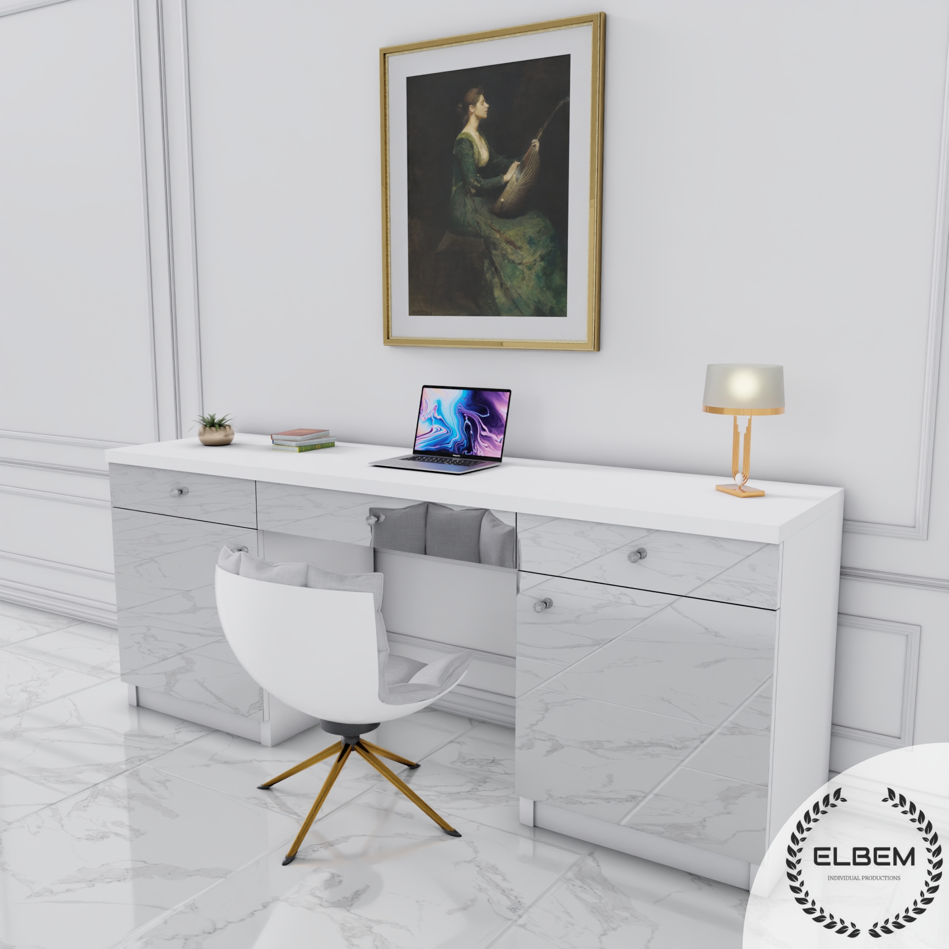 Białe biurko Glamour – szklane lustrzane fronty ELEGANTE