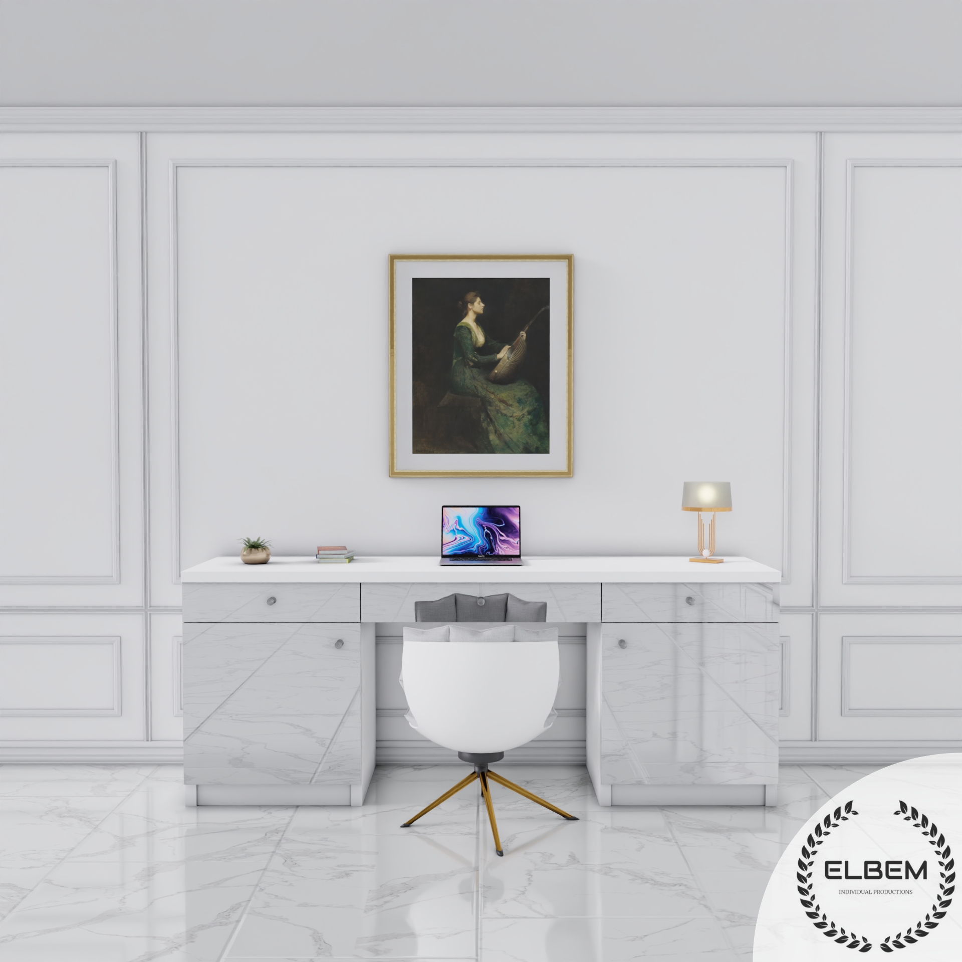 Biurko o niepowtarzalnym designie, które z łatwością stanie się sercem Twojego gabinetu, salonu czy mieszkania. Wykonane z solidnej, białej matowej płyty meblowej, to idealne połączenie funkcjonalności i elegancji. Jego najważniejszym atutem są pojemne szafki oraz trzy szuflady z lustrzanymi szklanymi frontami, każda z nich wyposażona w samodomyk.