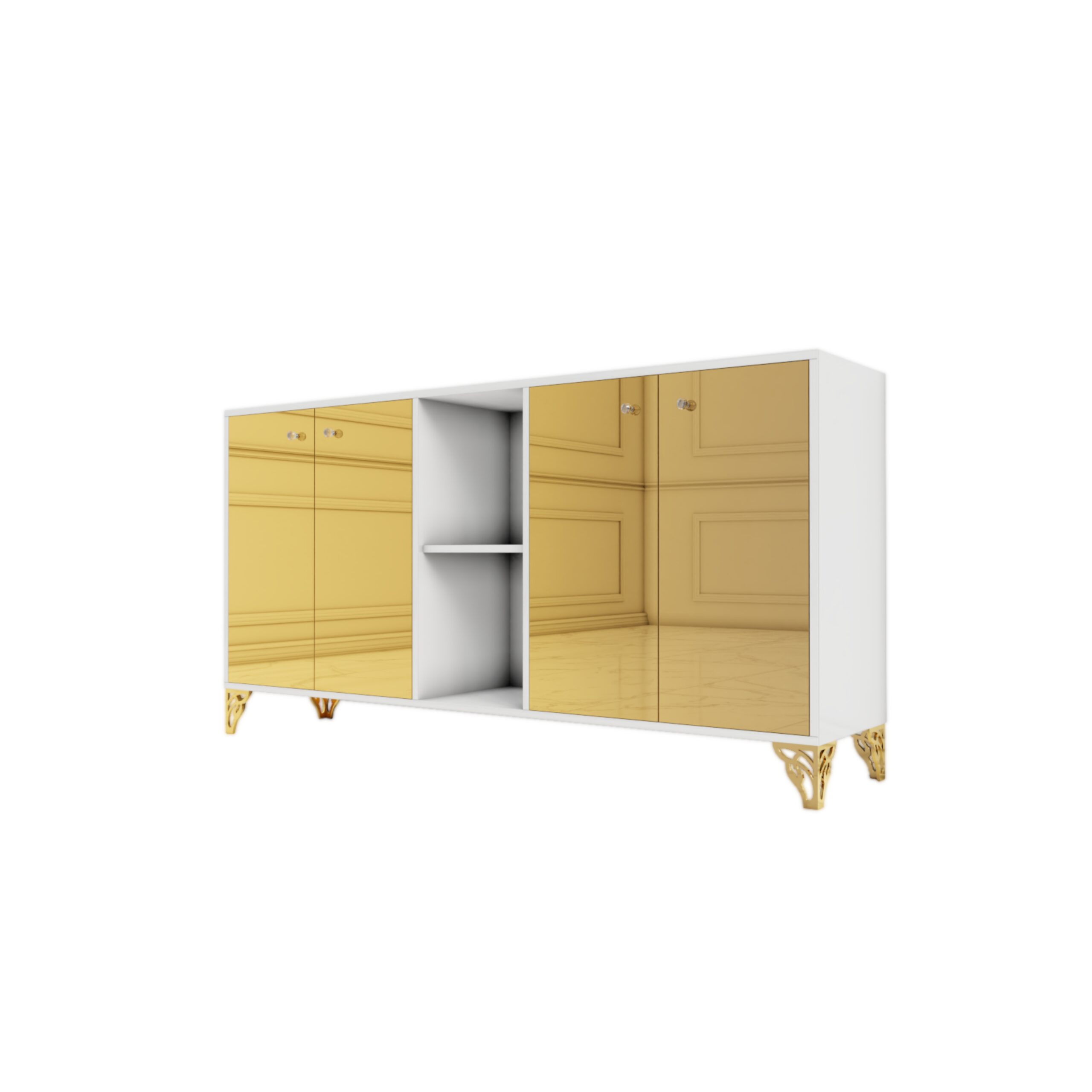 Komoda biały połysk – szklany złoty front Glamour FIAMMA GOLD