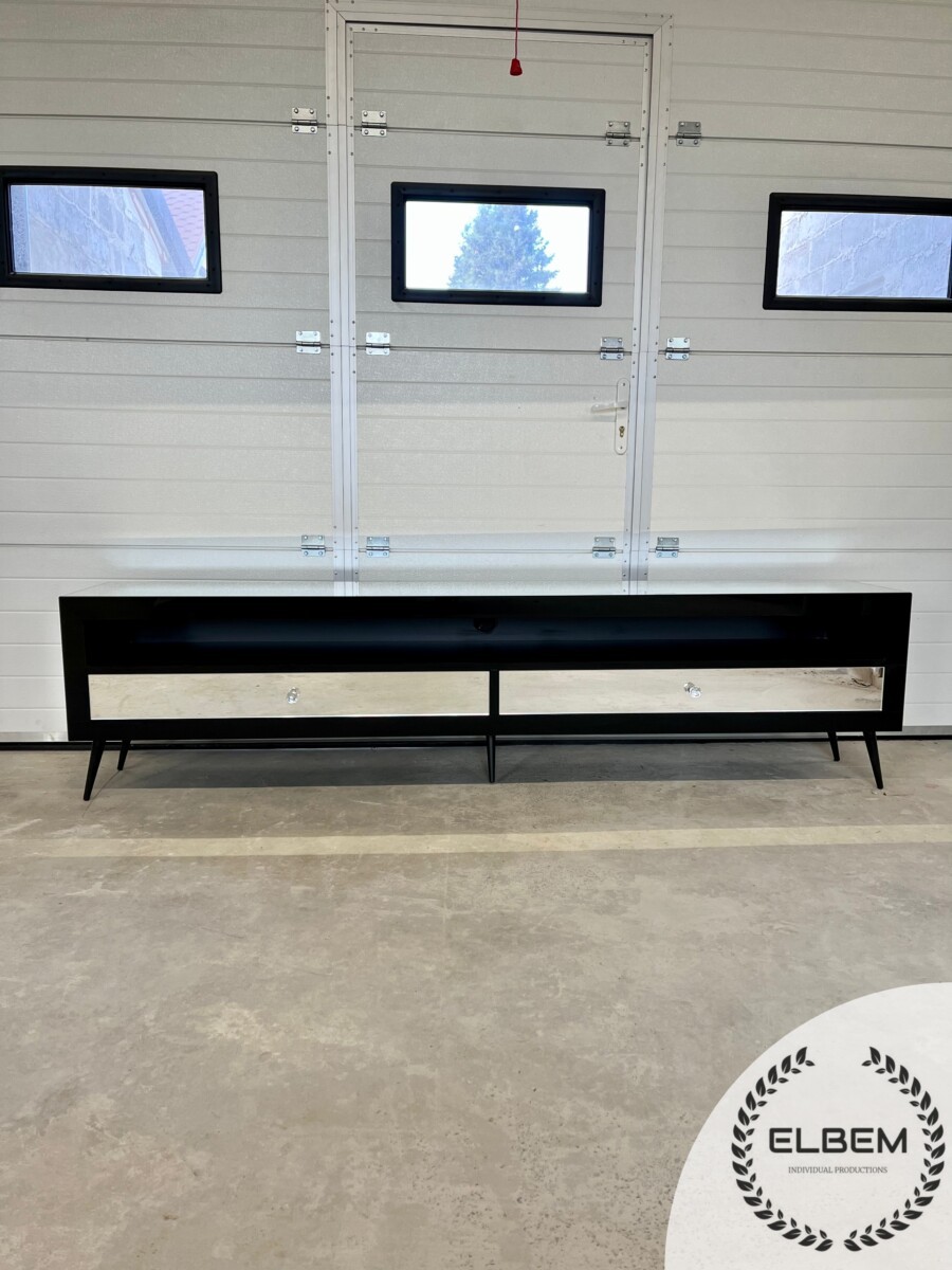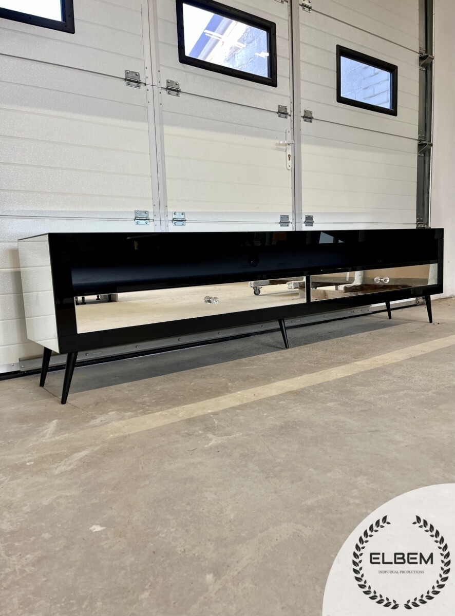 Lustrzana szafka RTV GLAMOUR – IMPERIAL GLAM – Czarna ramka