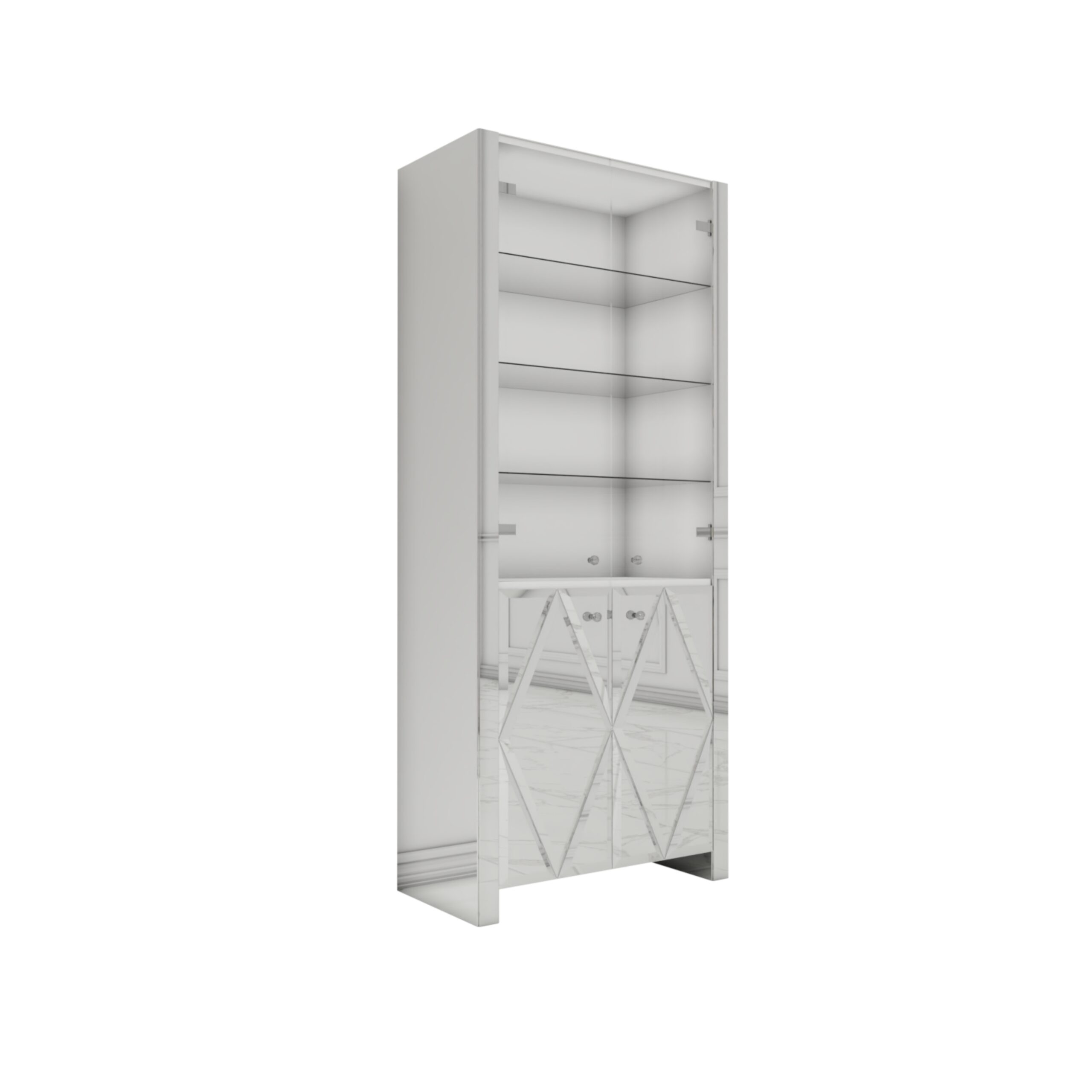Prezentujemy Ci lustrzaną witrynę z lustrzanymi rombami, która nie tylko zapewni praktyczne przechowywanie, ale również stanie się ozdobą Twojego wnętrza. To idealny mebel, który dodaje odrobinę luksusu i wyjątkowego blasku do każdego pomieszczenia.
