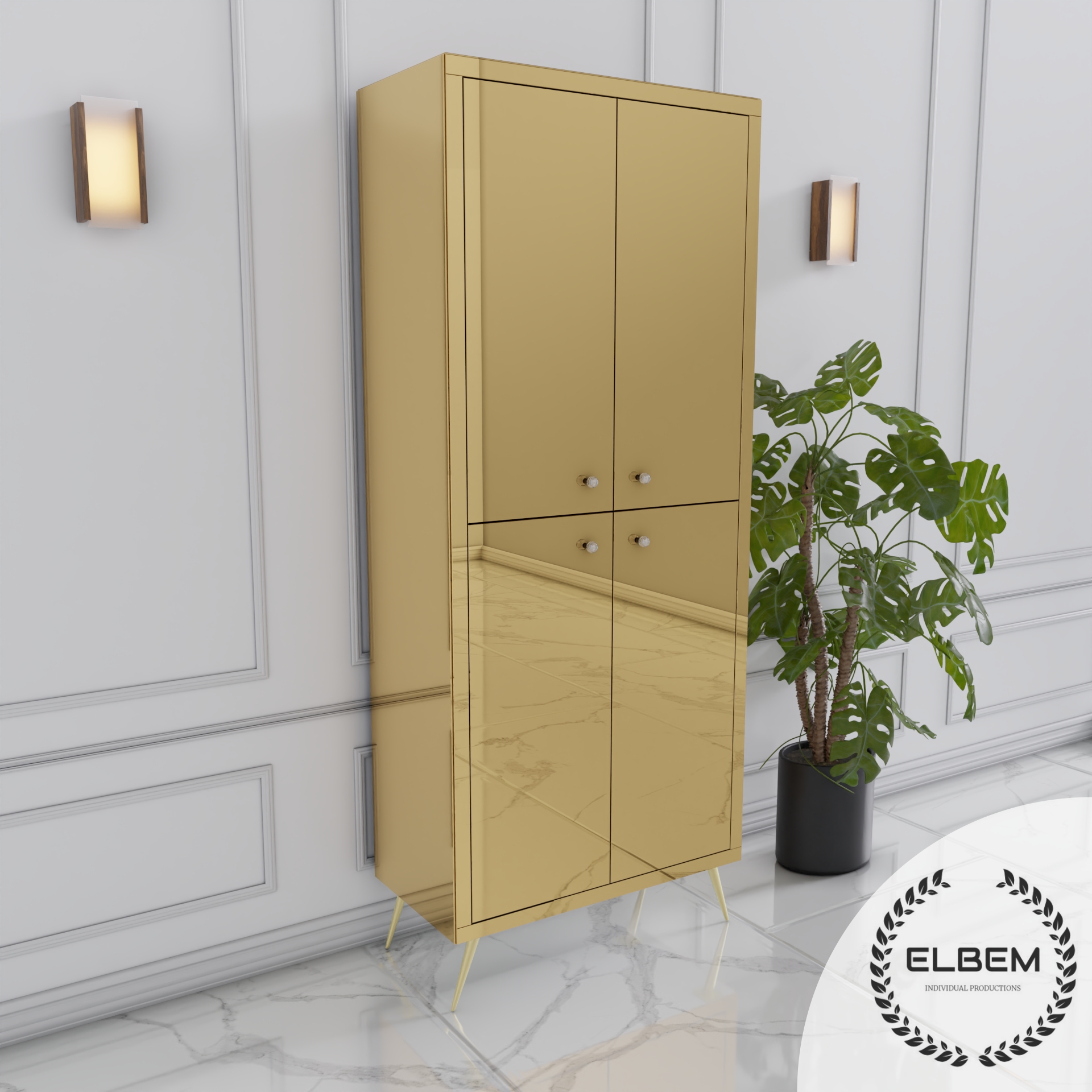 Prezentujemy Ci lustrzaną złotą witrynę na skośnych metalowych nóżkach, która nie tylko zapewni praktyczne przechowywanie, ale również stanie się ozdobą Twojego wnętrza. To idealny mebel, który dodaje odrobinę luksusu i wyjątkowego blasku do każdego pomieszczenia.