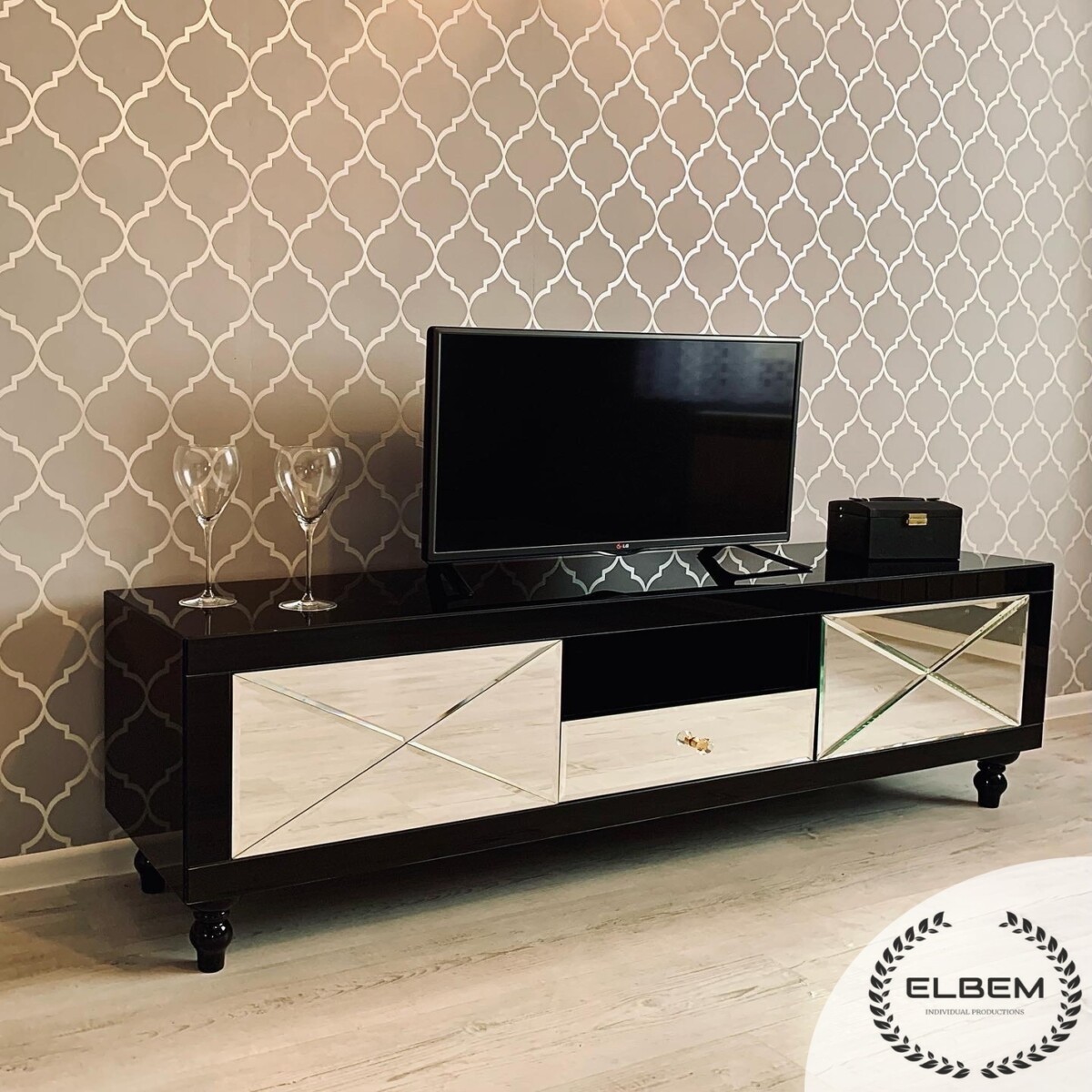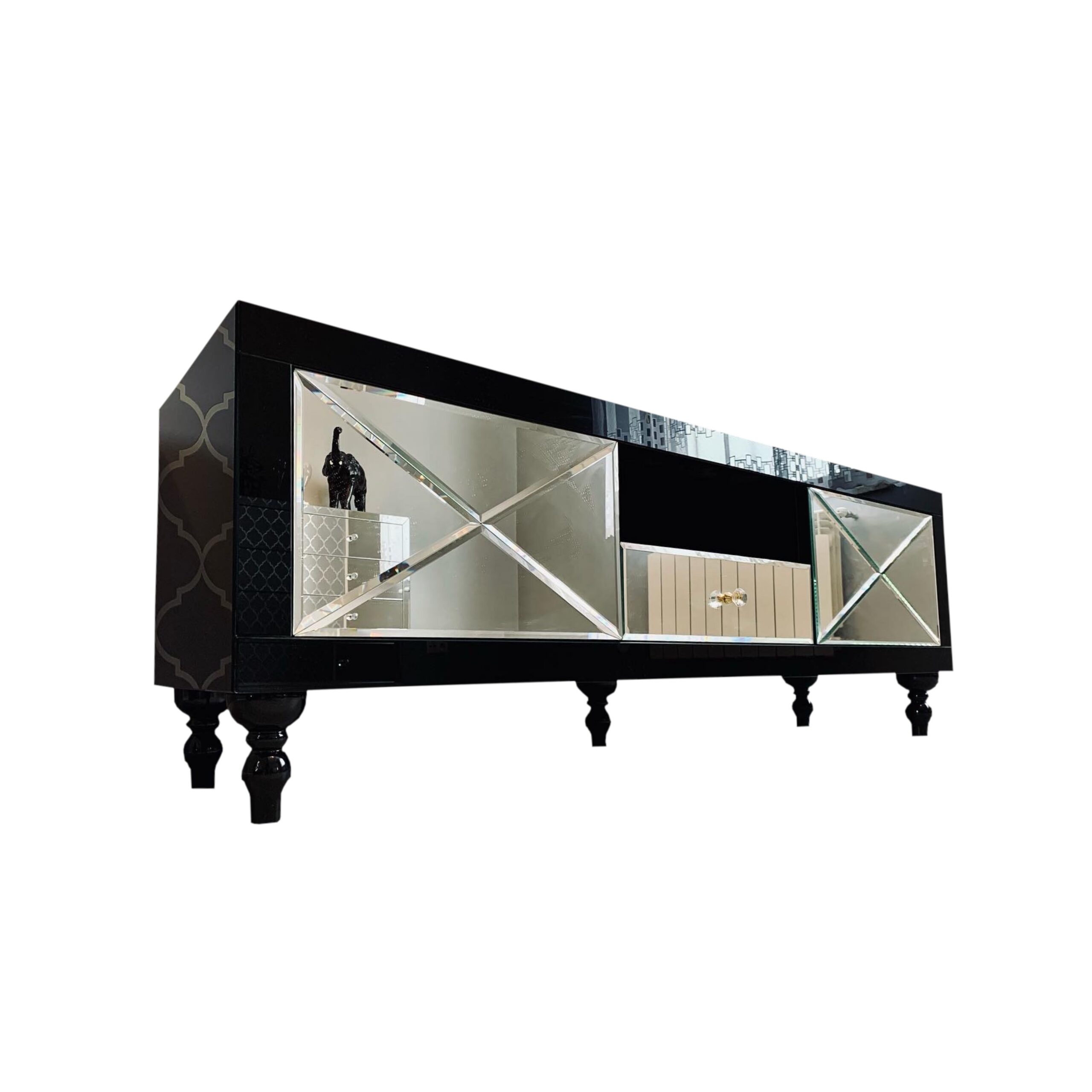 Szafka RTV GLAMOUR – CRYSTAL LUXE – Czarne szkło