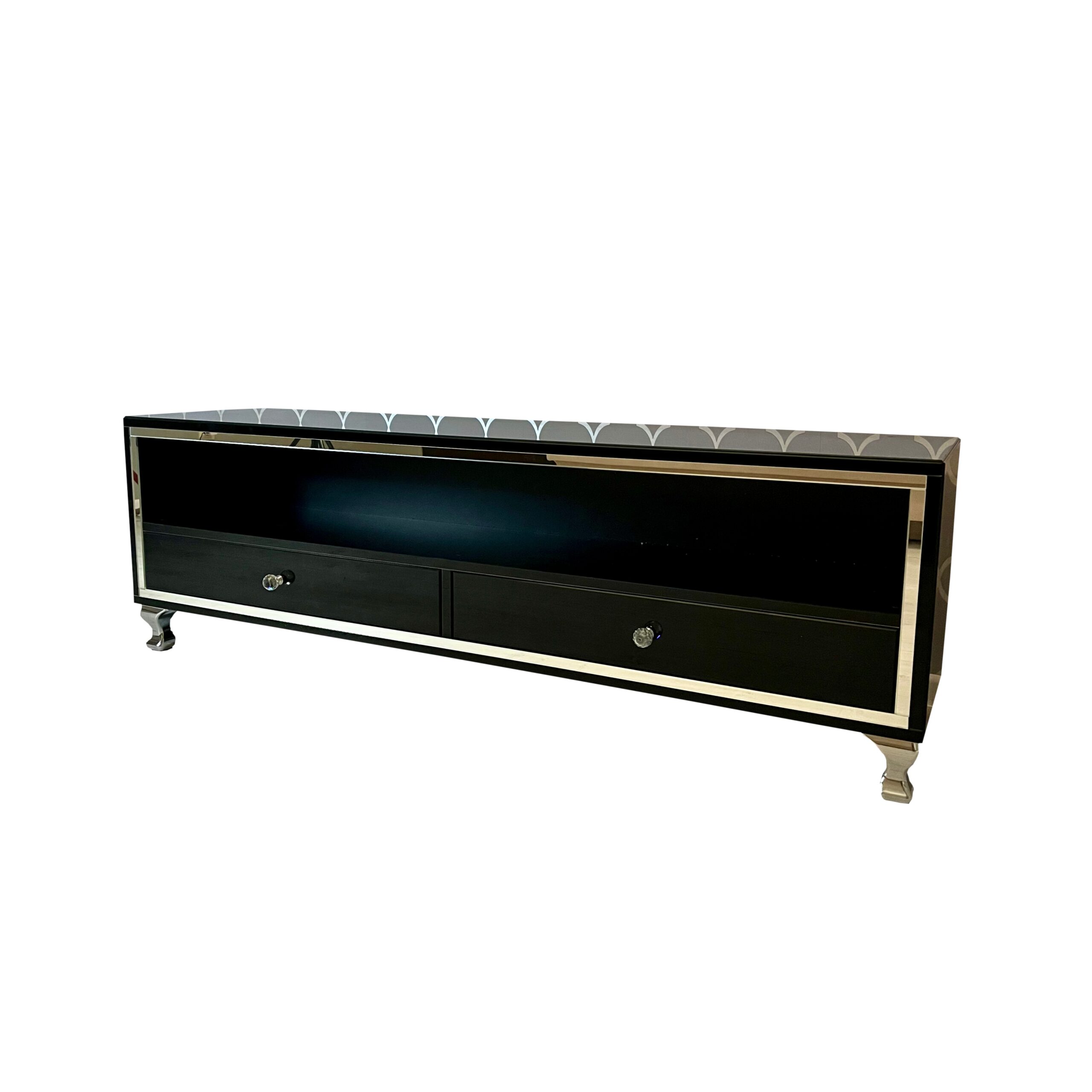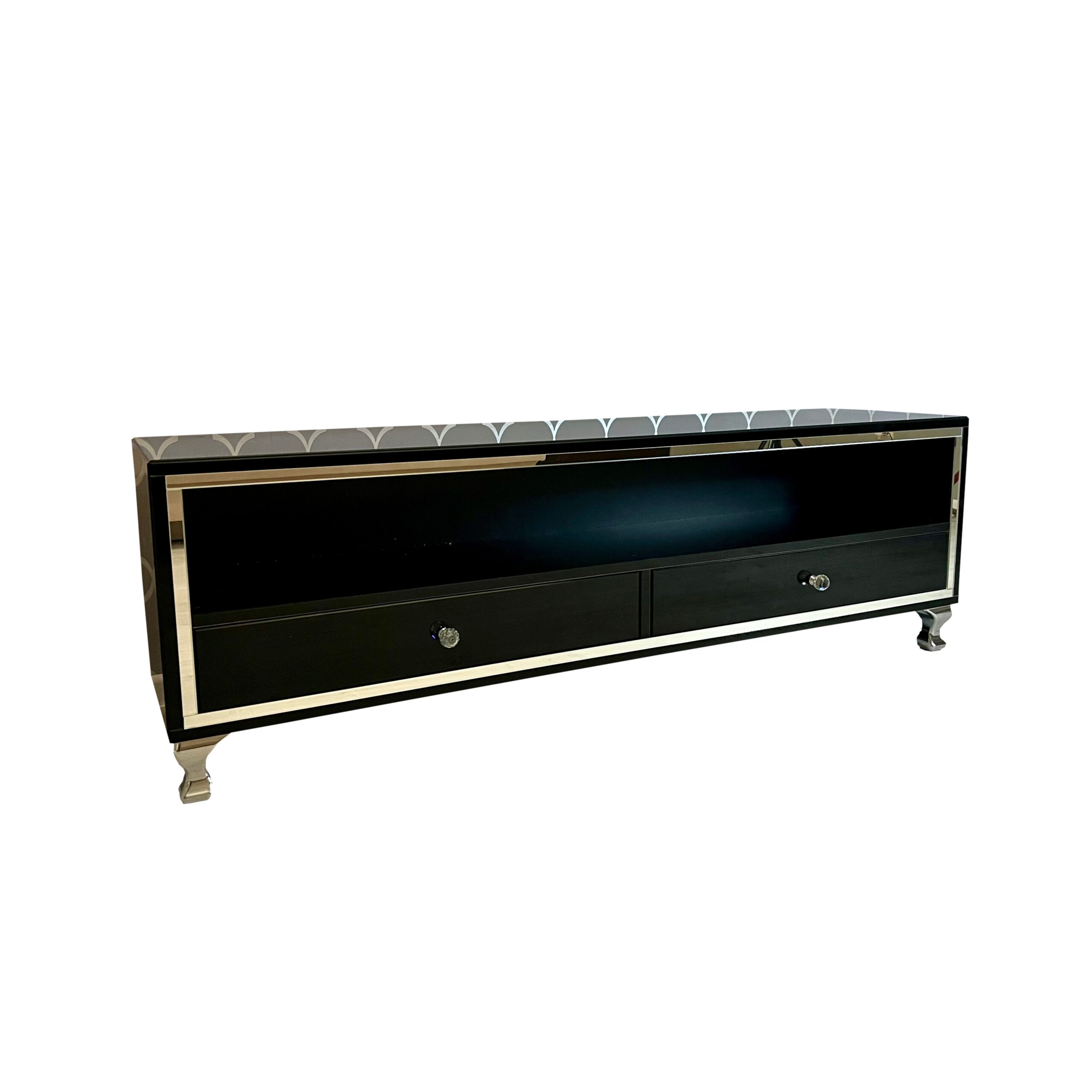 Szafka RTV GLAMOUR – HAVEN PLUS II – Czarne szkło