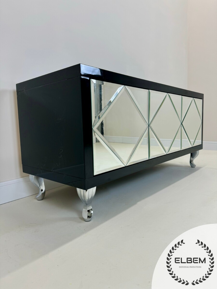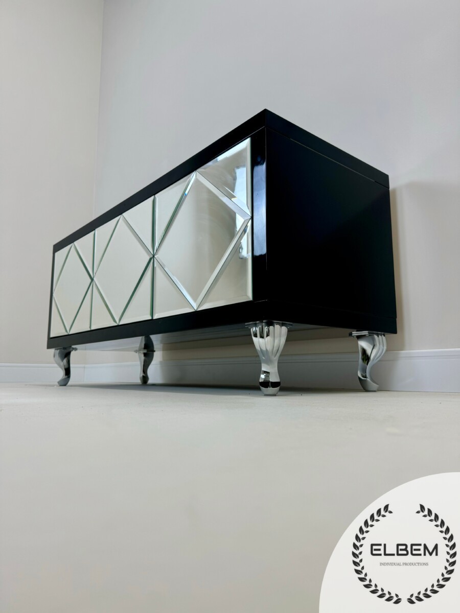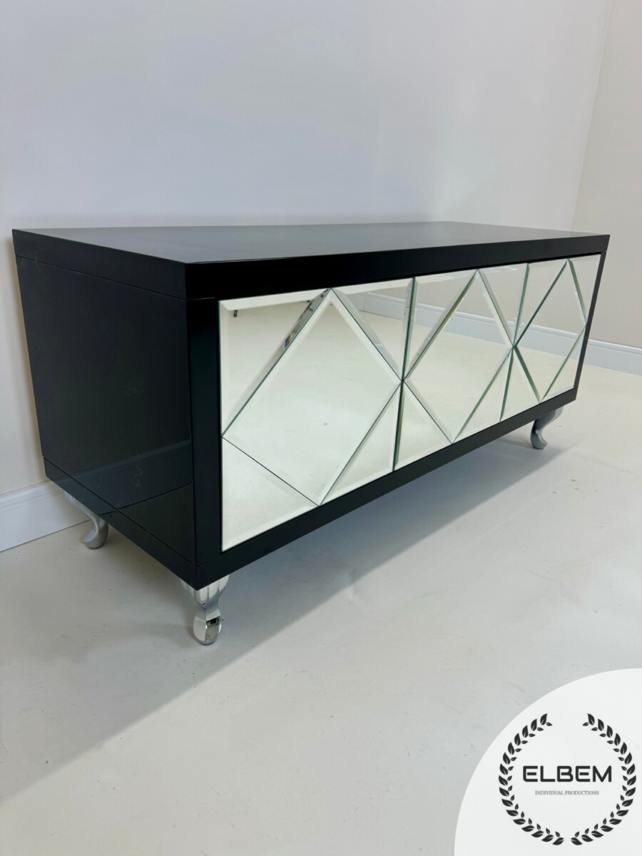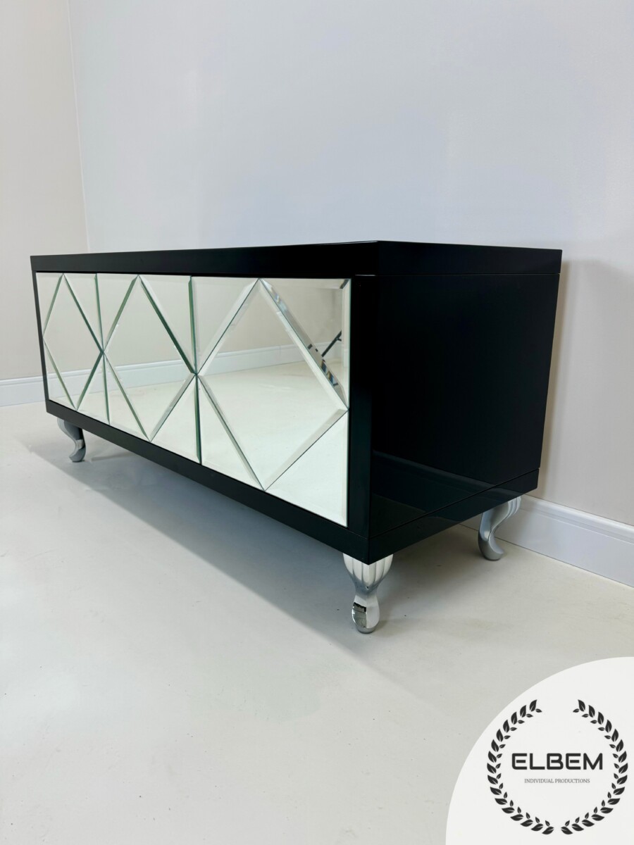 Szafka RTV GLAMOUR – OPAL ESSENCE PLUS – Czarny połysk