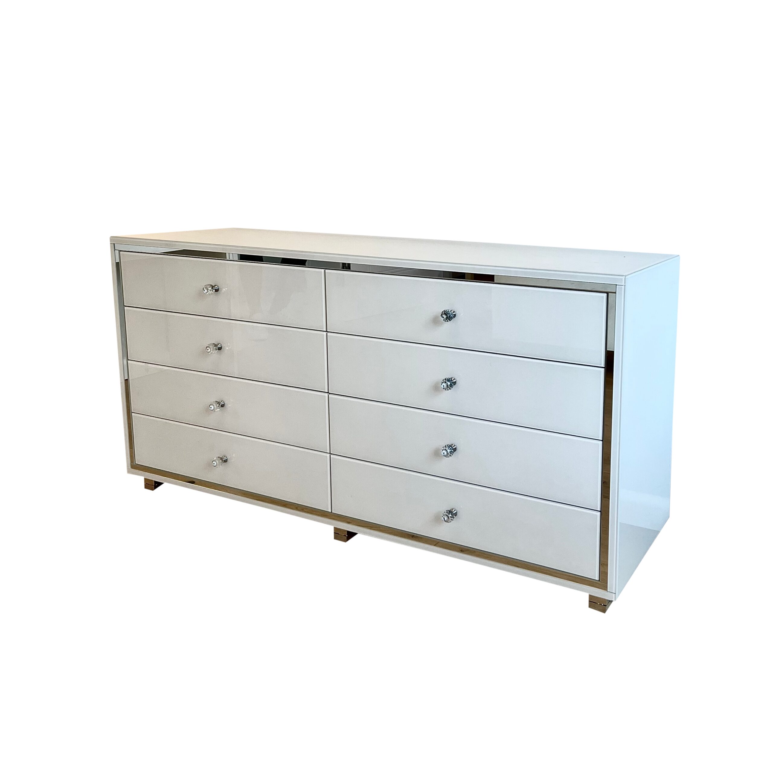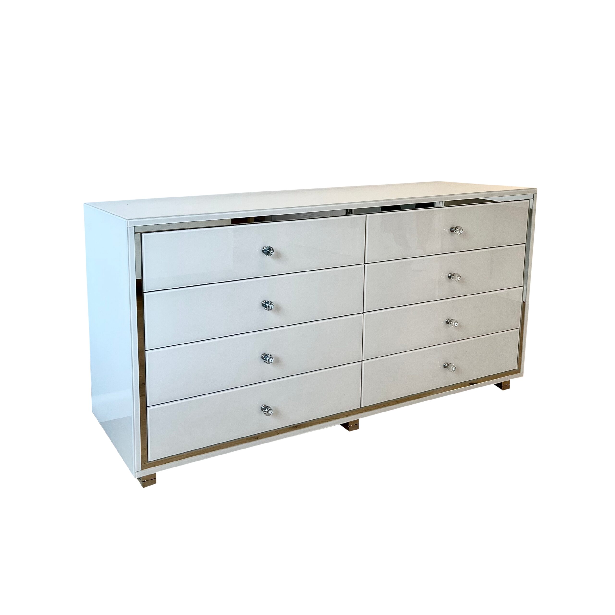 Szklana biała komoda Glamour – lustrzana ramka GLAME
