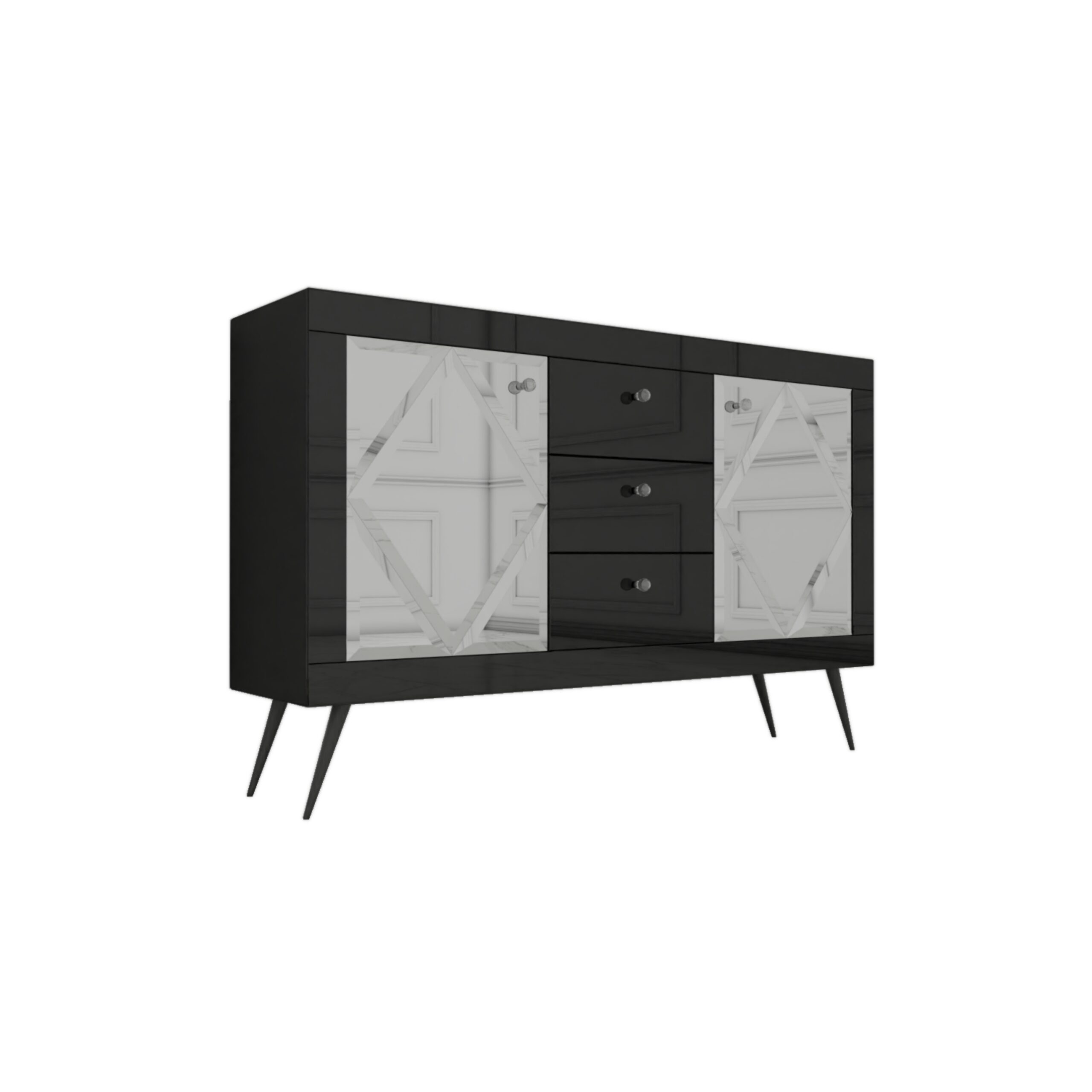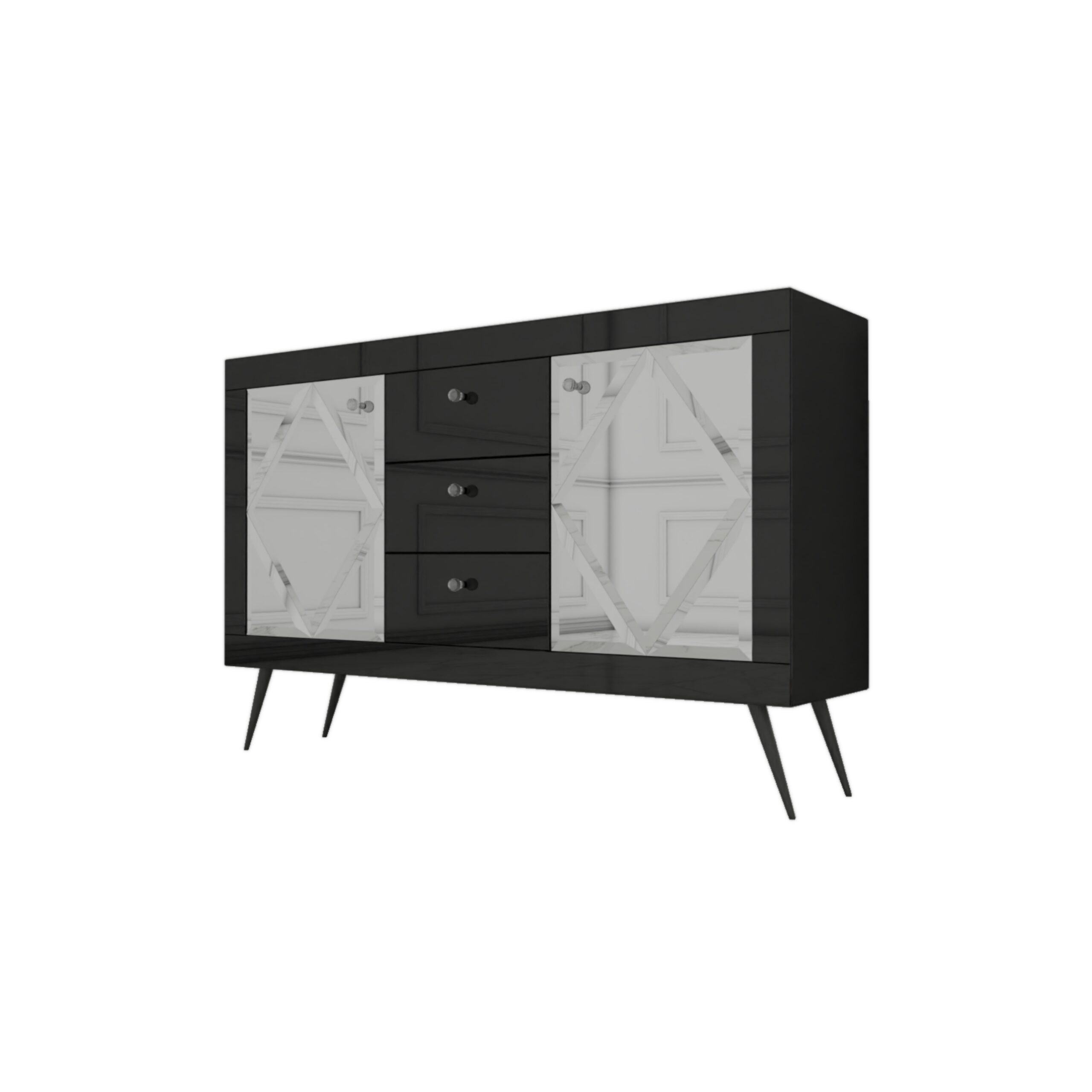 Szklana czarna komoda Glamour – lustrzane romby BELLAGIO BLACK