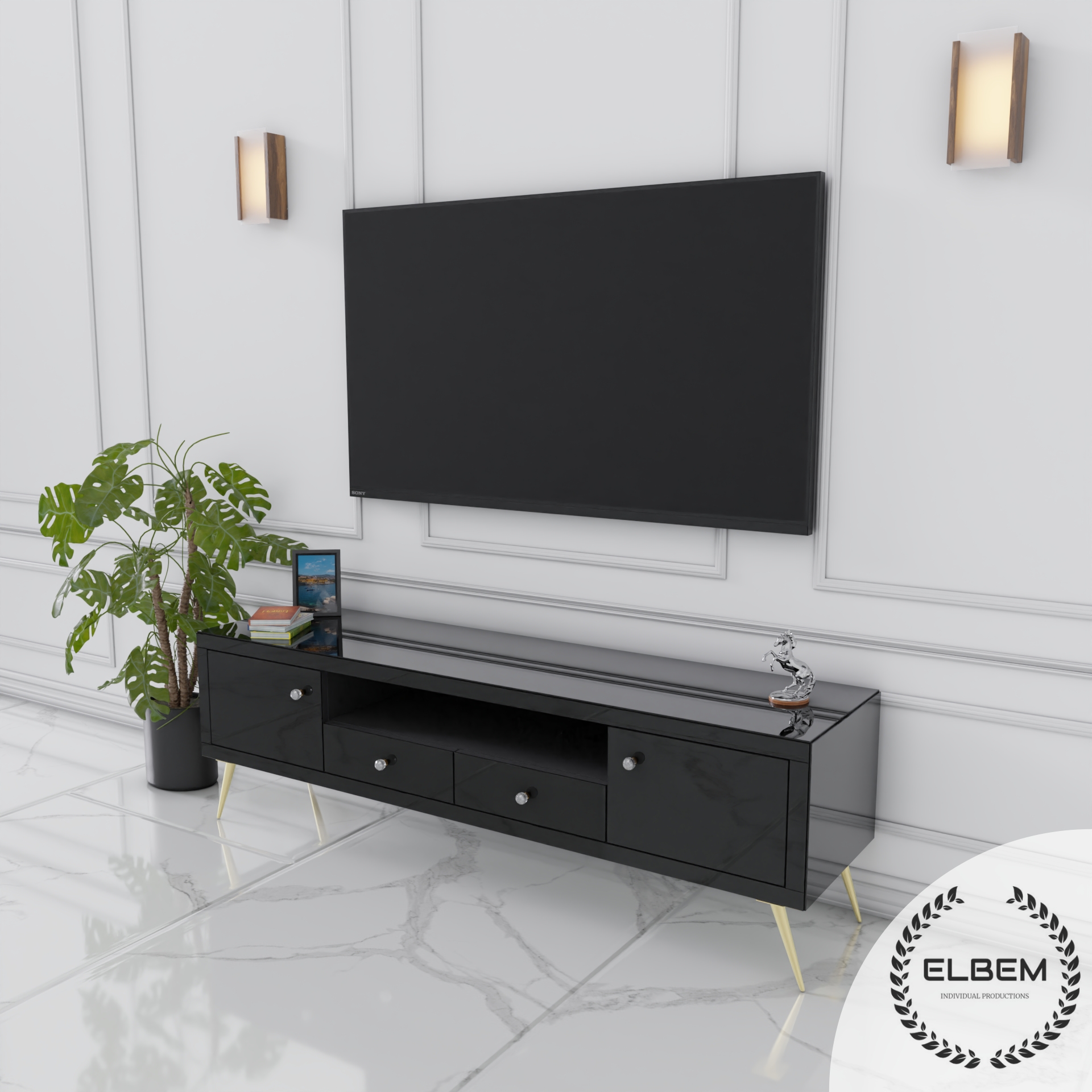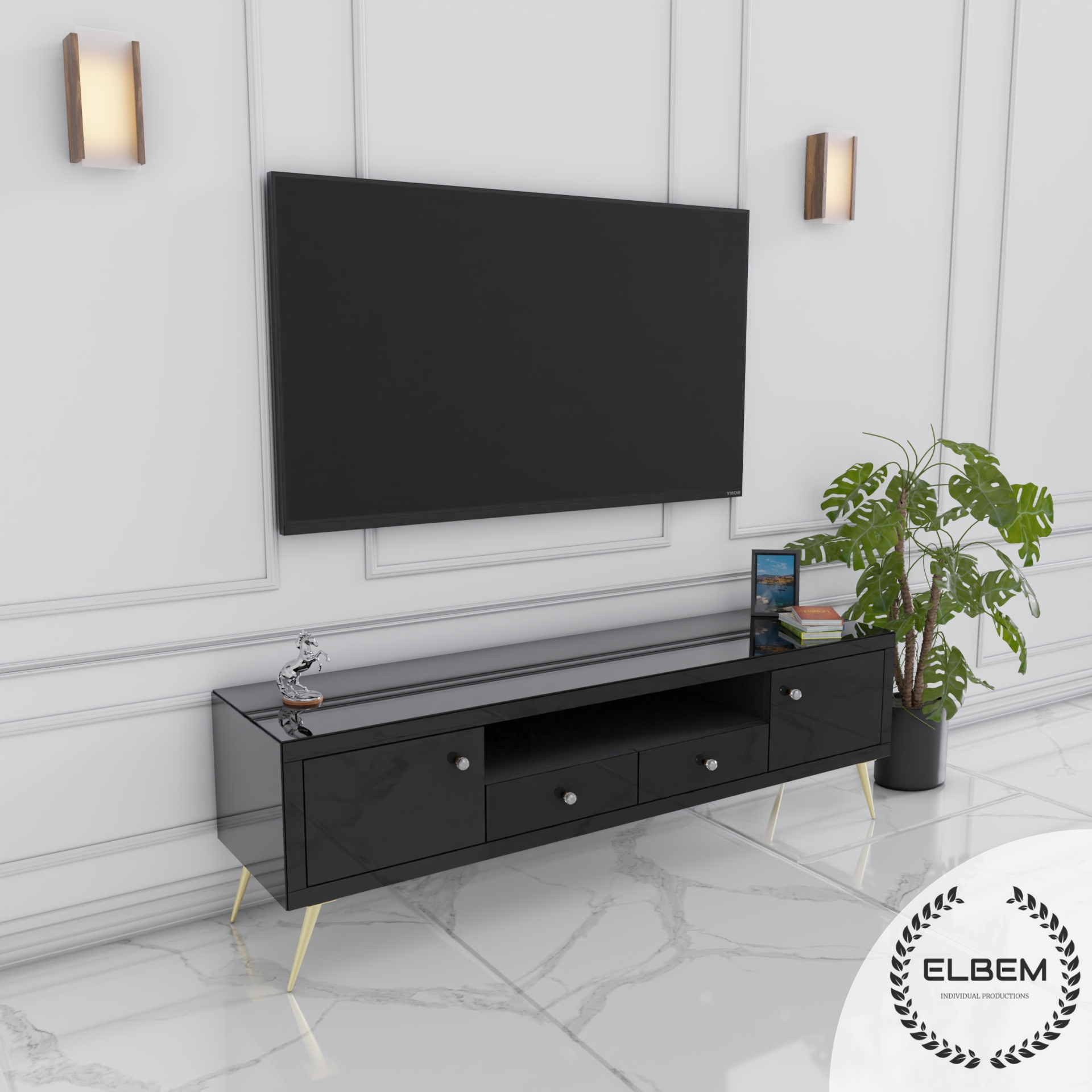 Szklana czarna szafka RTV Glamour NOELLE BLACK
