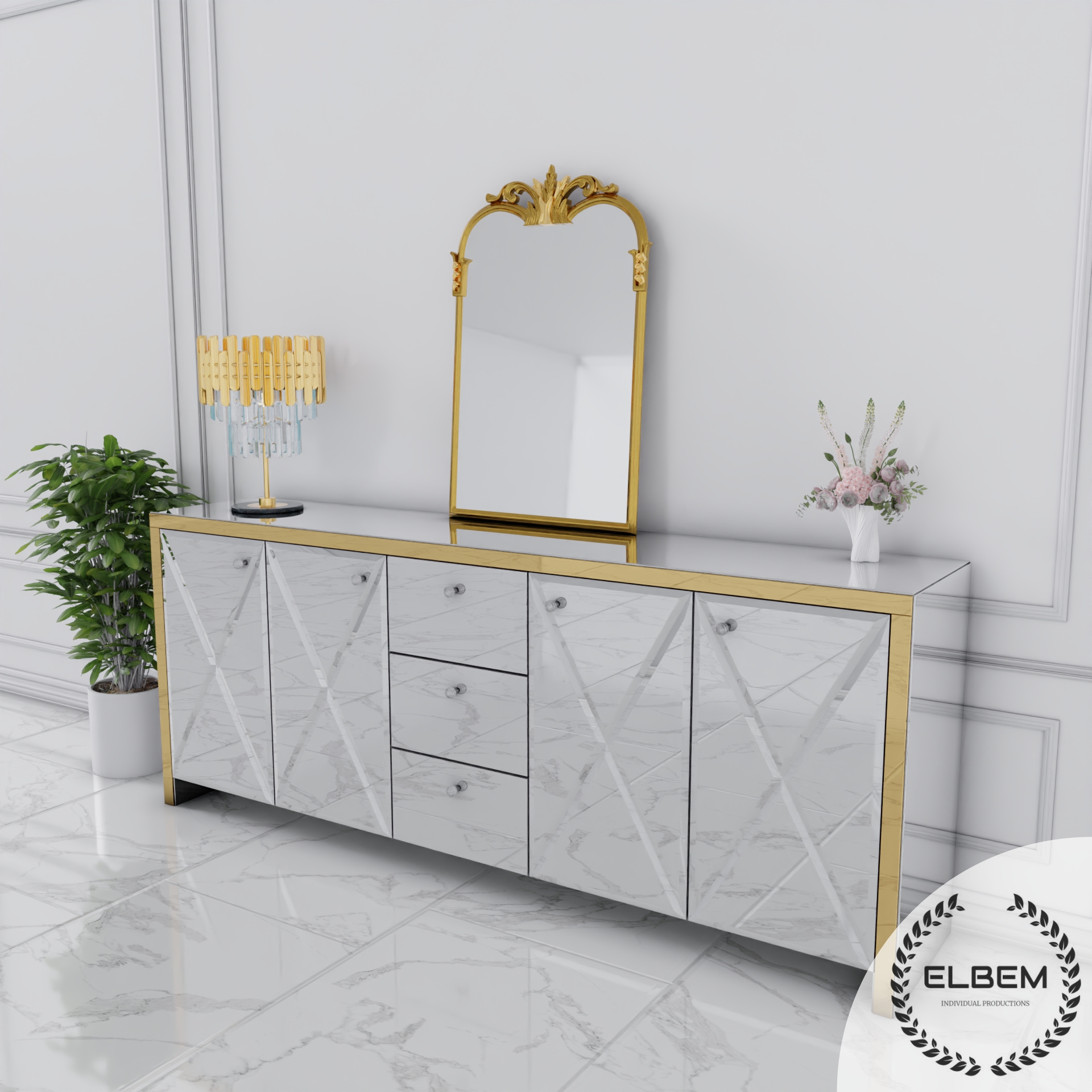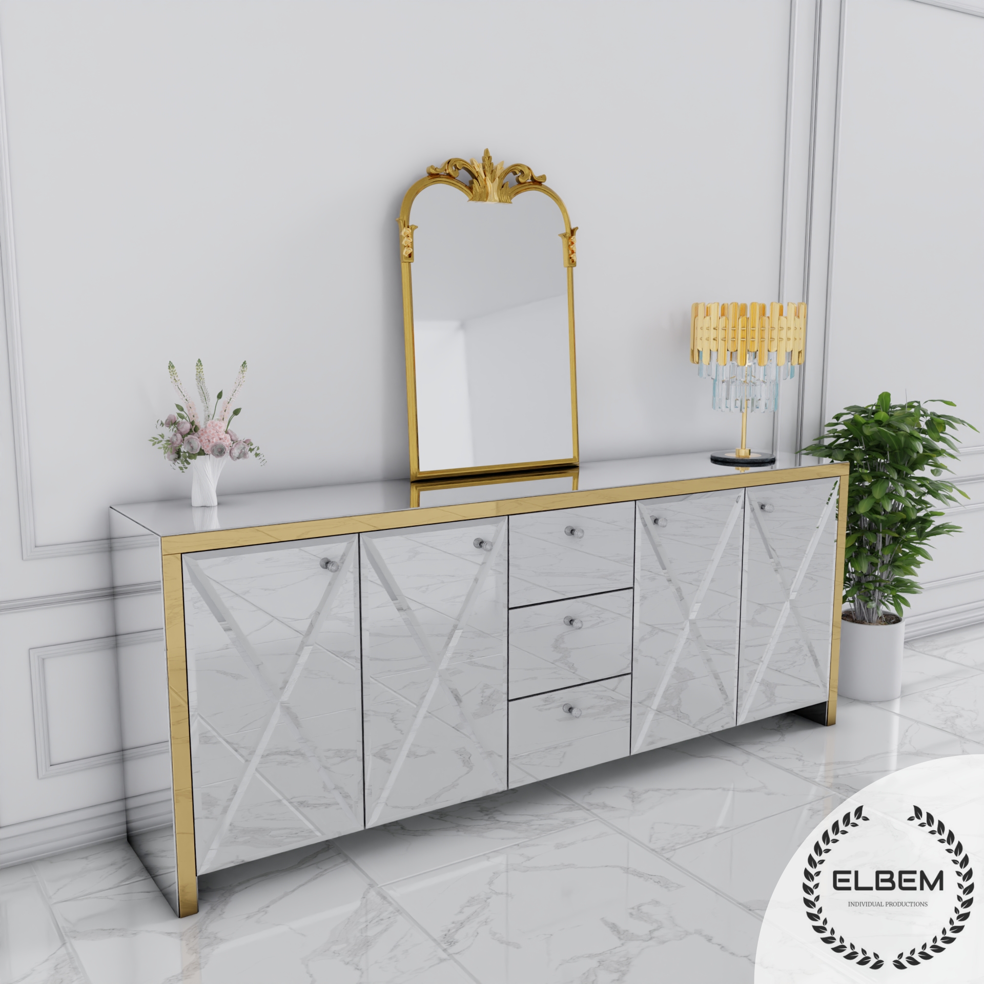 Szklana lustrzana komoda Glamour – MONARCH CRYSTAL GOLD II