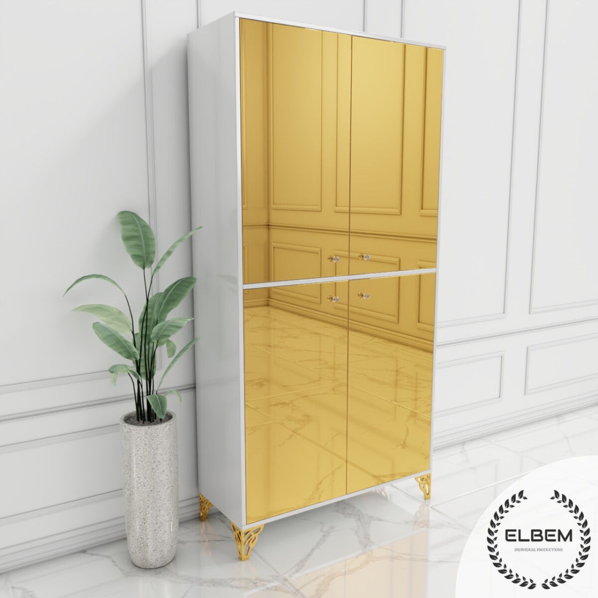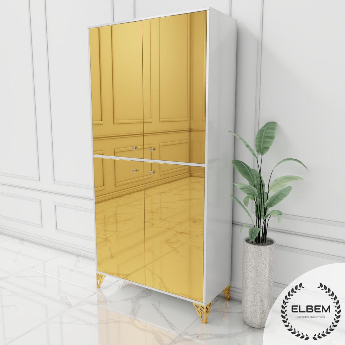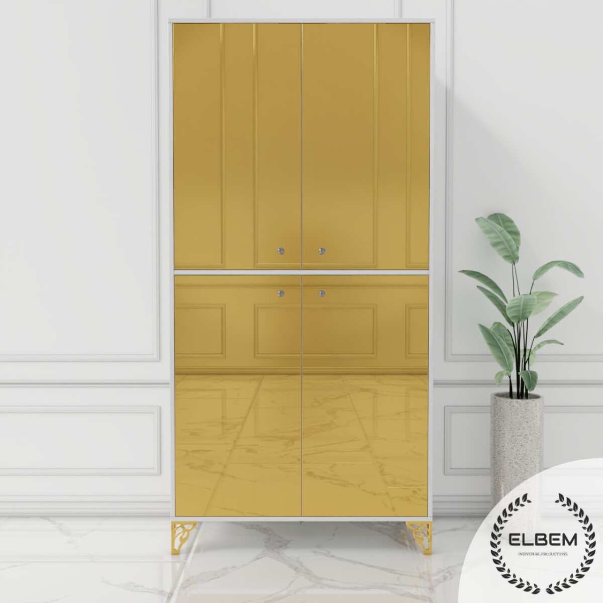 Witryna biały połysk Glamour – złote szklane BRILLANTE GOLD