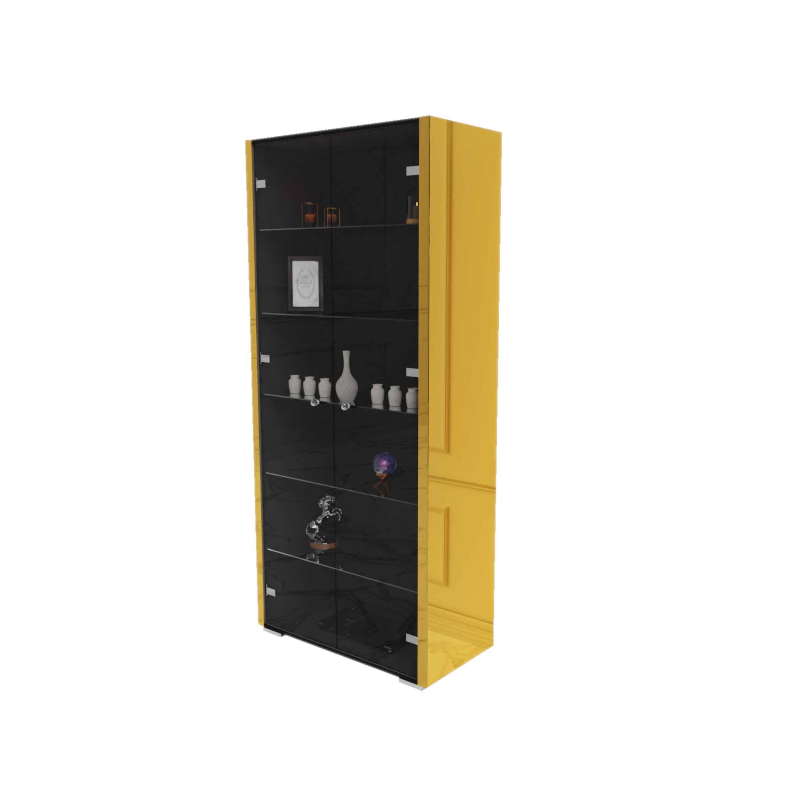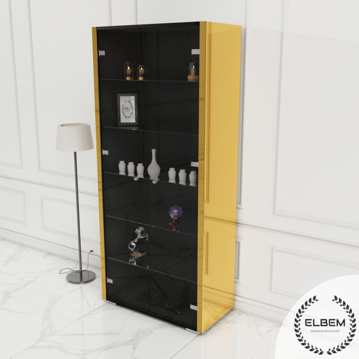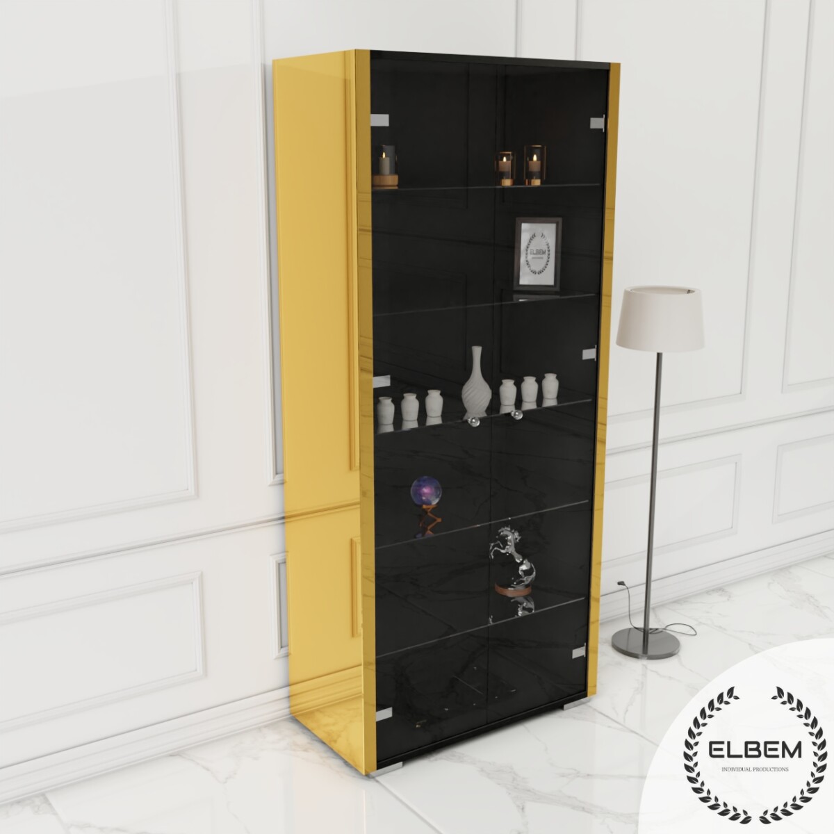 Odkryj luksus w każdym szczególe! Nasza złota lustrzana gablota w stylu Glamour to synonim elegancji. Ze szklanymi półkami i przezroczystymi drzwiczkami wprowadzi niepowtarzalny blask do Twojej przestrzeni.