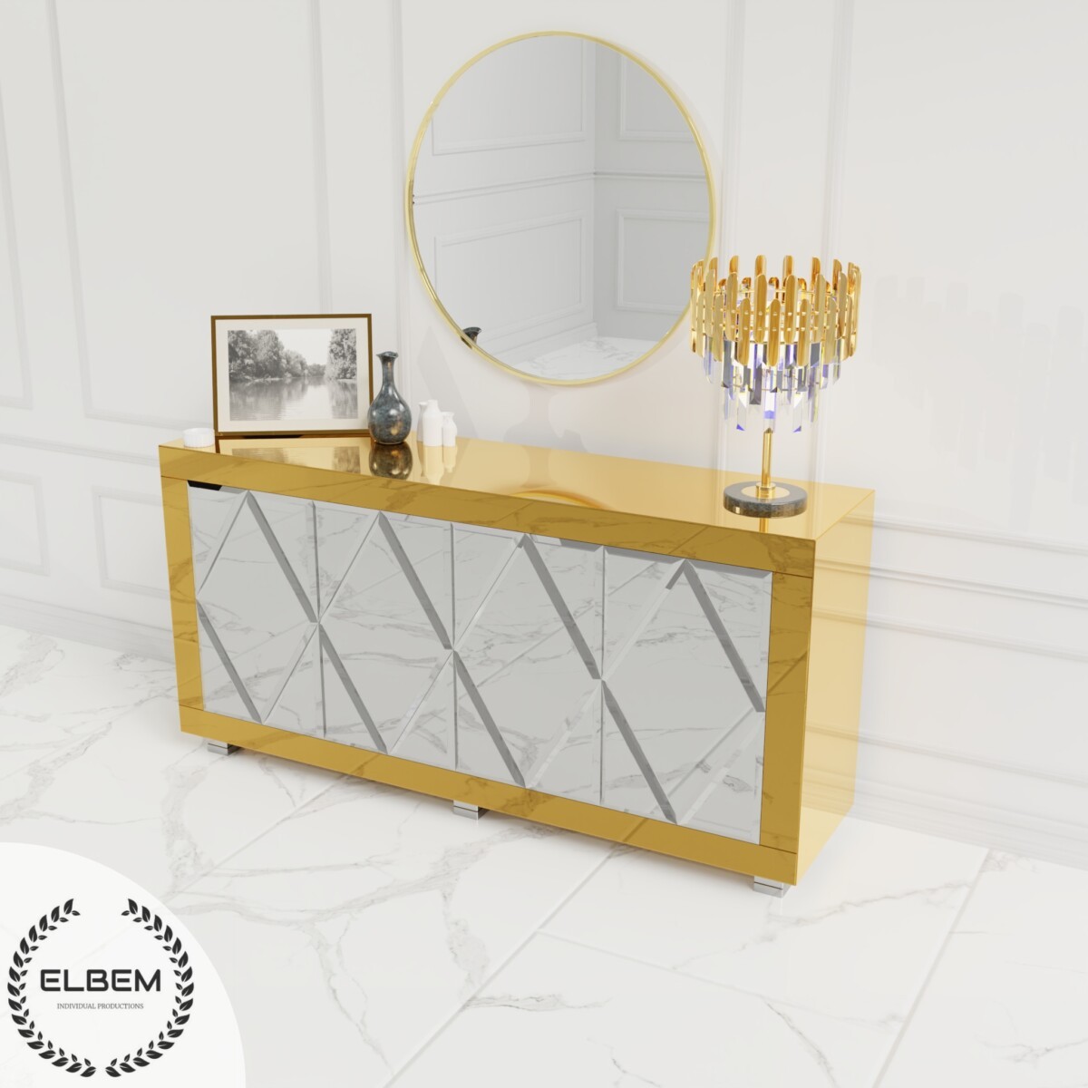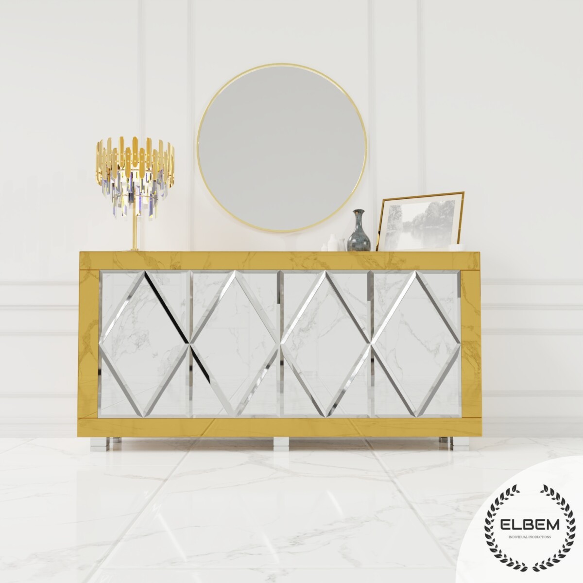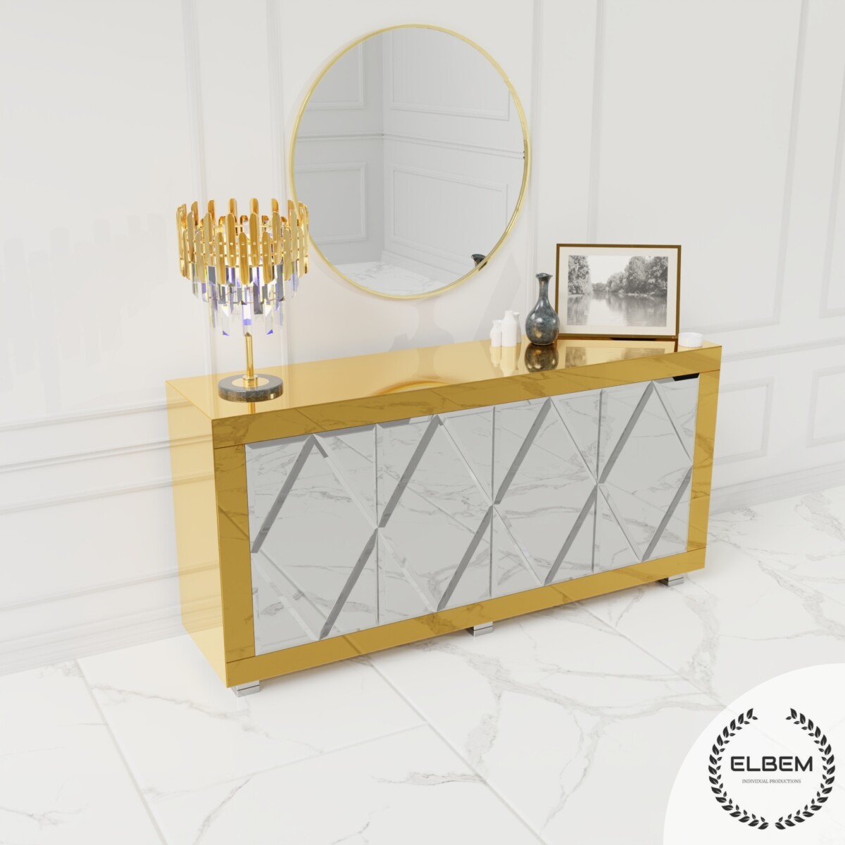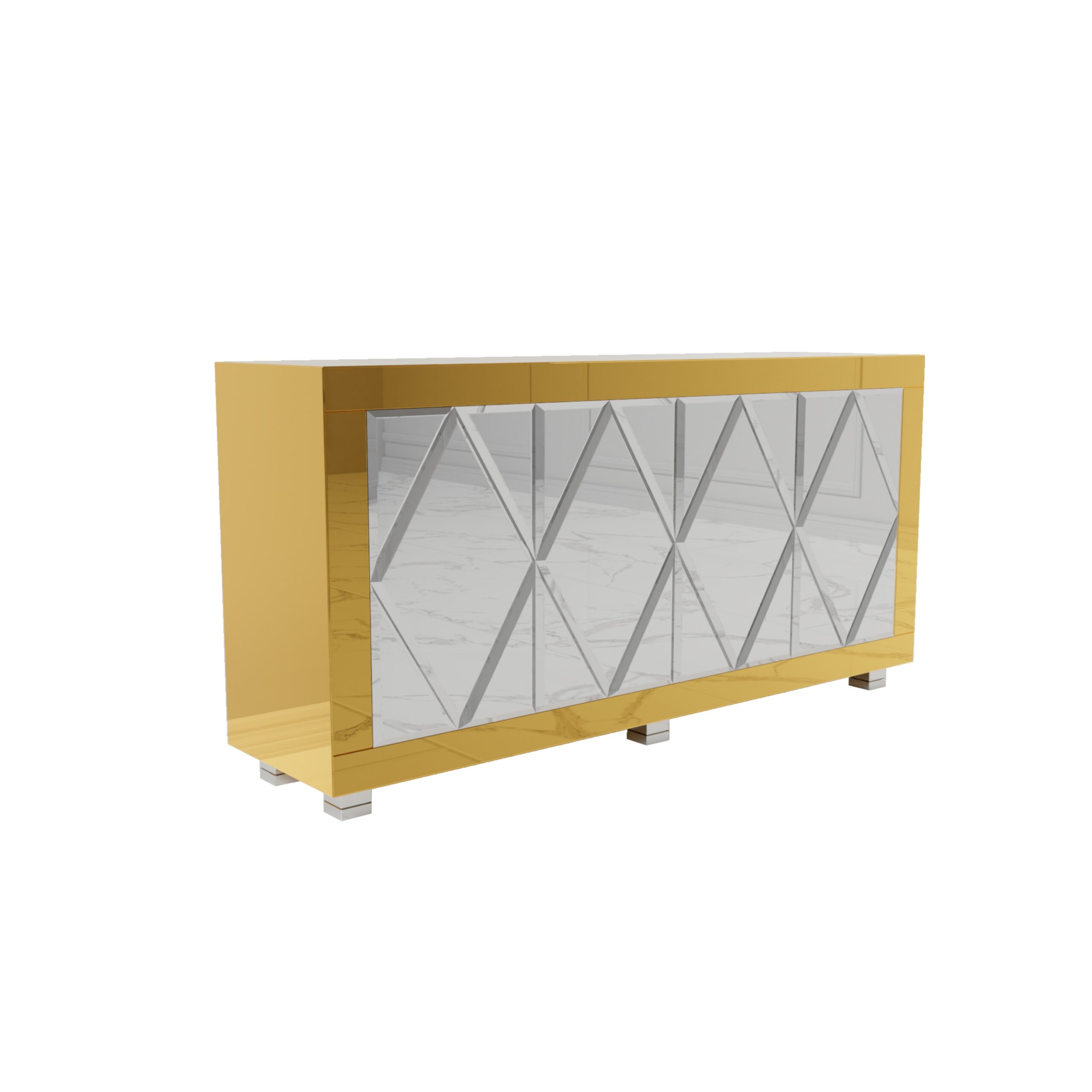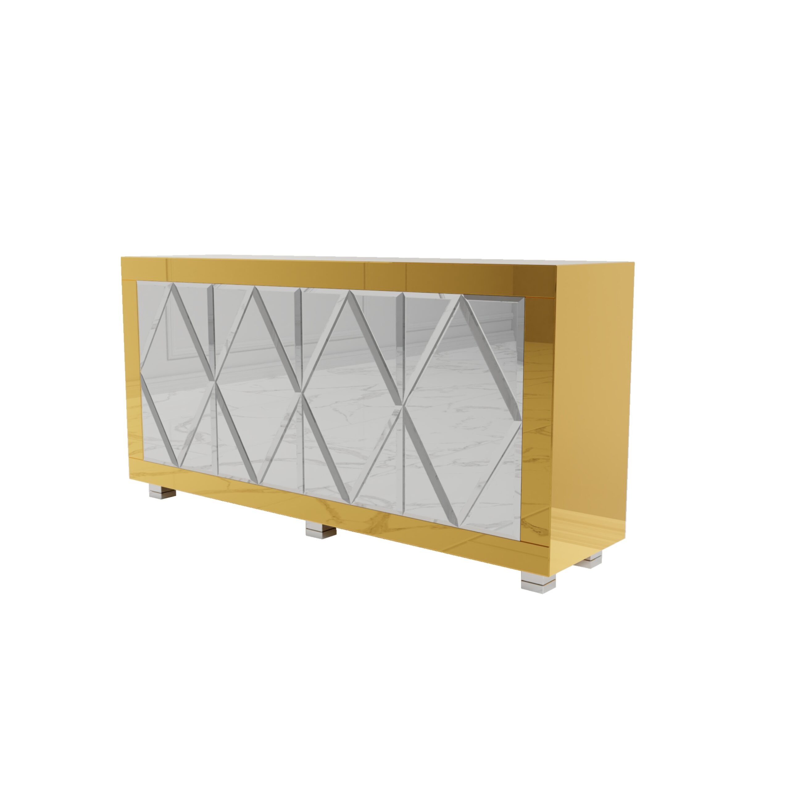 Złota lustrzana komoda z rombami Glamour CASTELLO GOLD
